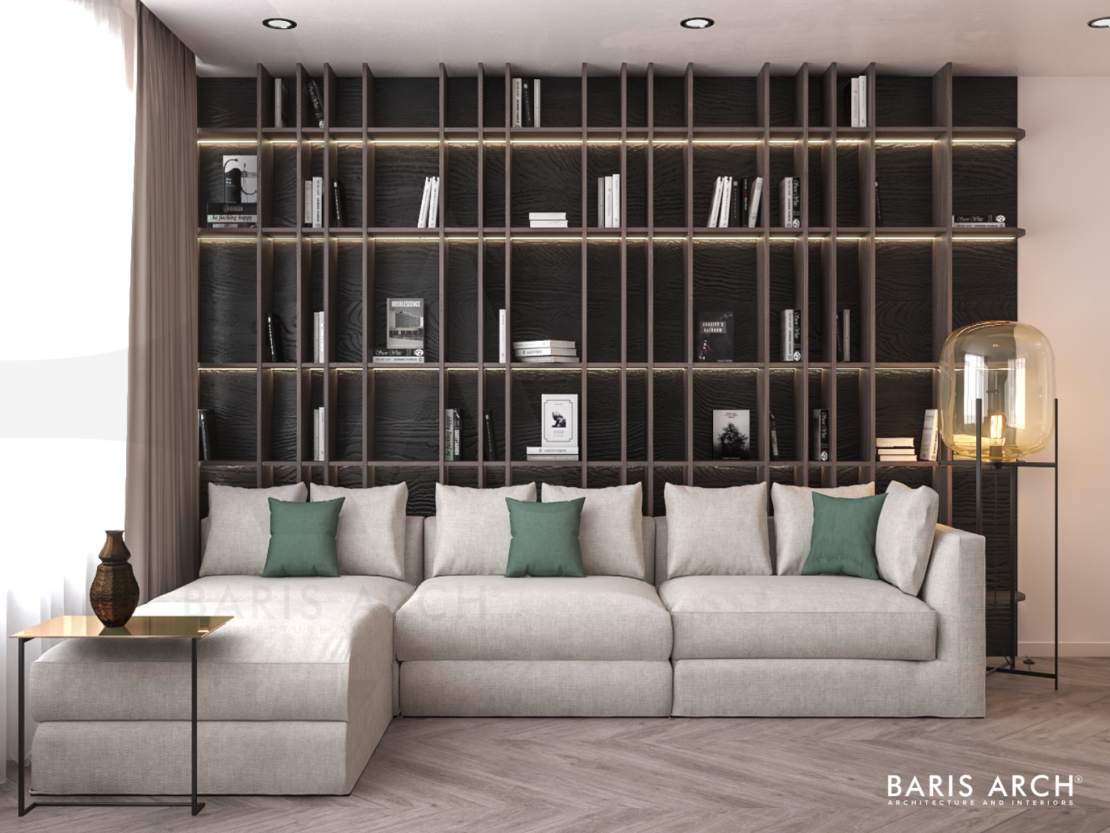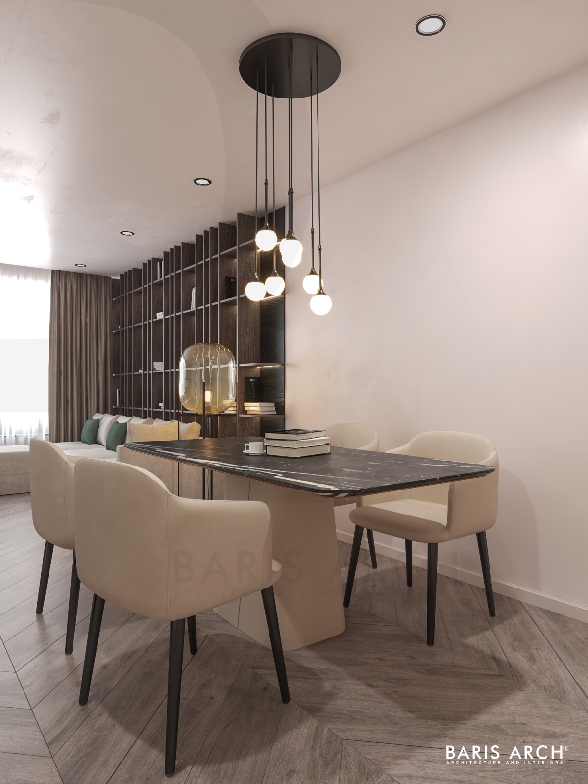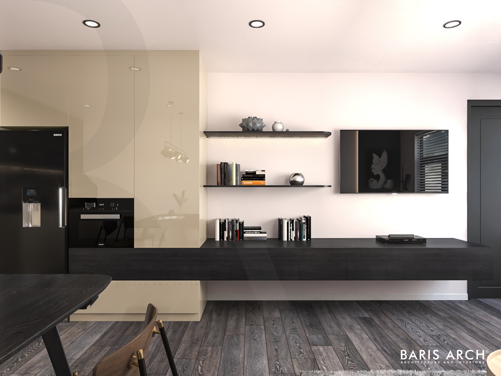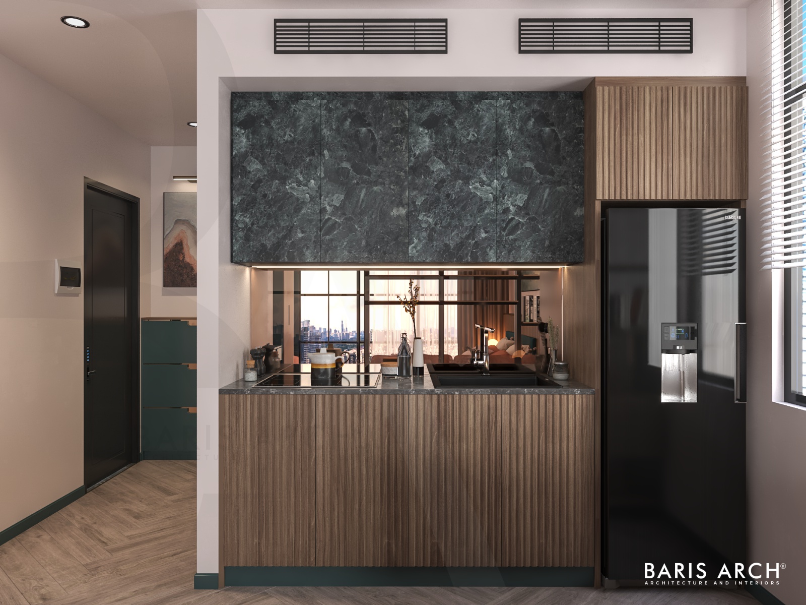 Với dự án nhà phức hợp AA, Baris Arch được giao nhiệm vụ thiết kế 3 căn hộ khác nhau với chung một định hướng: hiện đại, tiện nghi, tinh tế và mang lại cảm giác ấm cúng cho người sở hữu. Theo đó, để tận dụng không gian và tạo sự tiện nghi cao nhất, chúng tôi lựa chọn những chiếc kệ tủ kích thước vừa phải với nhiều công năng, dùng cho cả kệ bếp, phòng làm việc lẫn sảnh ra vào. Những chiếc gương vừa và lớn cũng được bố trí nhiều nơi trong nhà để tạo cảm giác căn hộ được rộng hơn. Chúng tôi sử dụng chất liệu màu trung tính tông trầm và tối để giúp mang lại sự ấm cúng cho chủ nhà. Bề mặt nội thất tối kết hợp với hệ thống đèn chiếu phù hợp sẽ tạo cho gia chủ cảm giác không bị chói loá và ngột ngạt, mà có thể thả mình sau một ngày dài làm việc mệt mỏi.