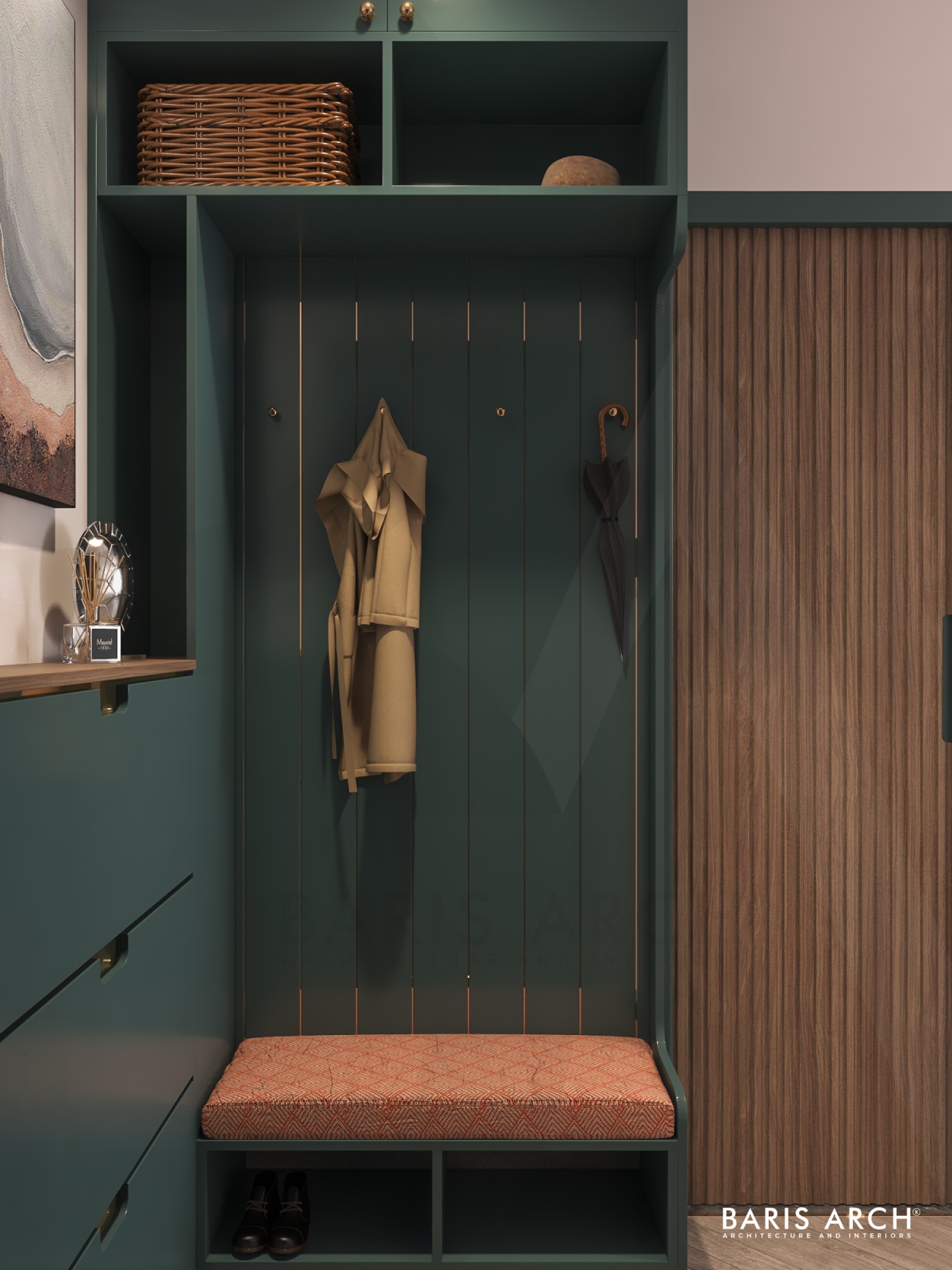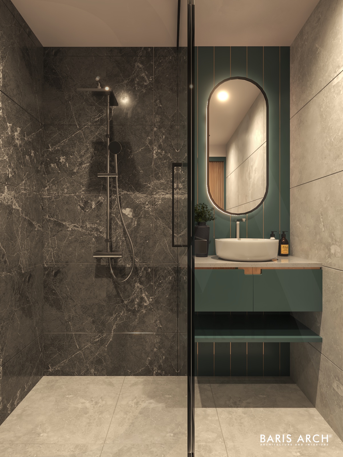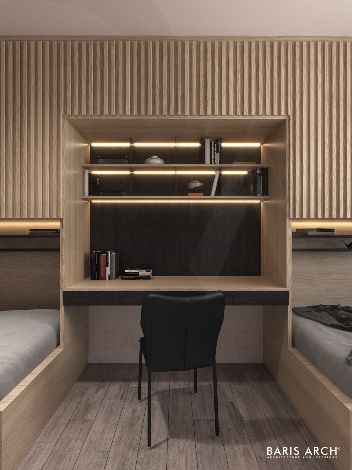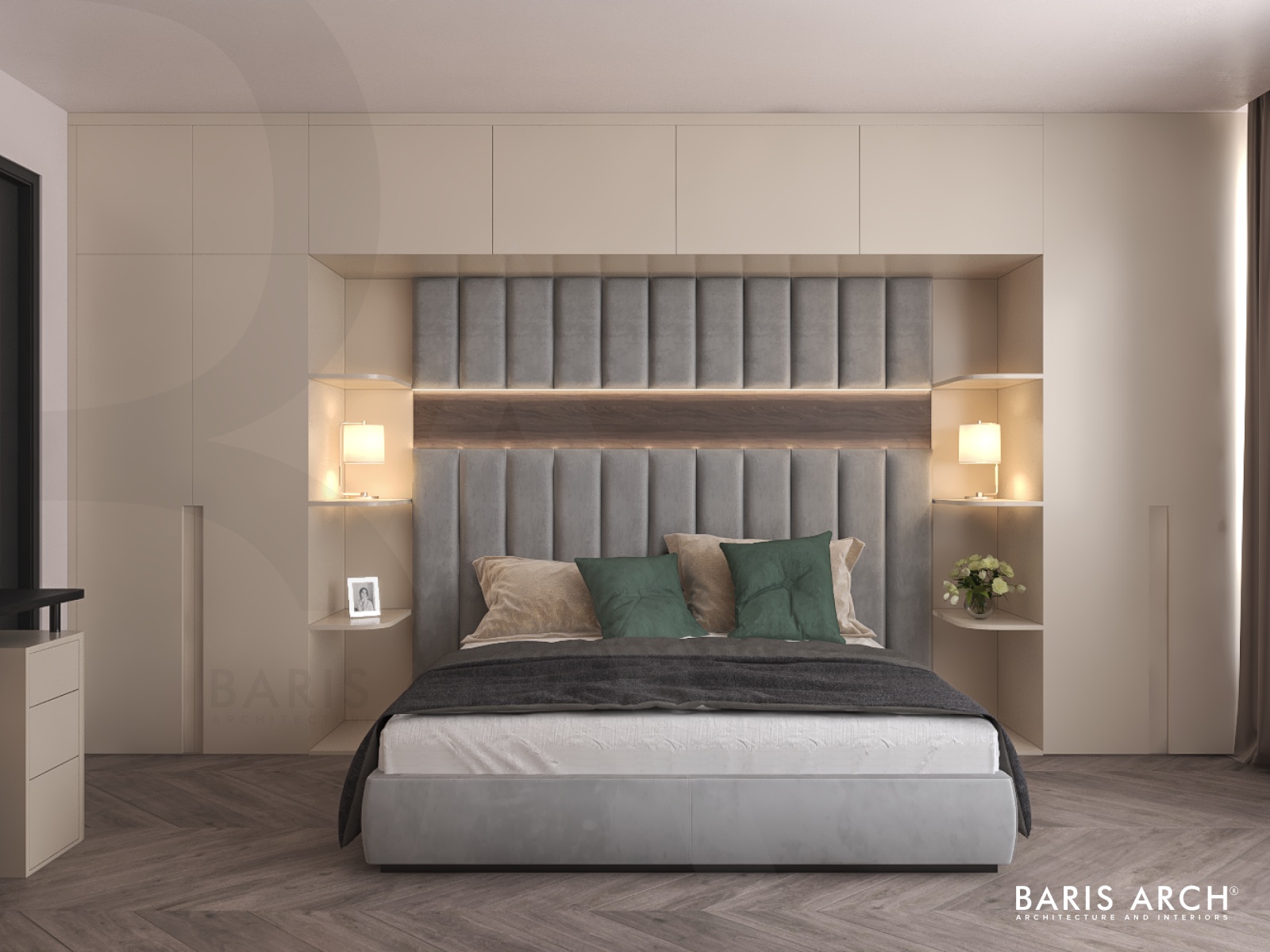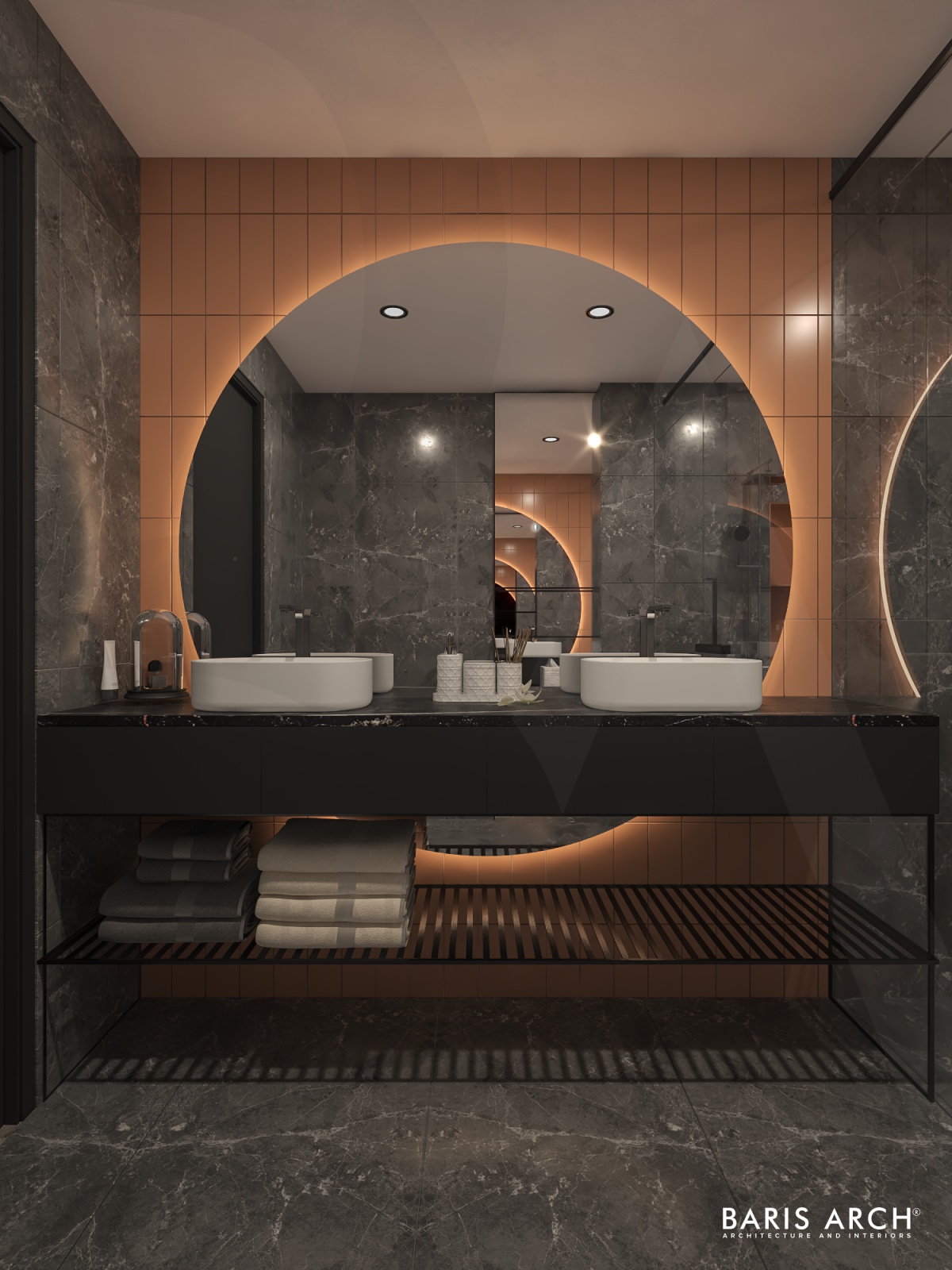 Với dự án nhà phức hợp AA, Baris Arch được giao nhiệm vụ thiết kế 3 căn hộ khác nhau với chung một định hướng: hiện đại, tiện nghi, tinh tế và mang lại cảm giác ấm cúng cho người sở hữu. Theo đó, để tận dụng không gian và tạo sự tiện nghi cao nhất, chúng tôi lựa chọn những chiếc kệ tủ kích thước vừa phải với nhiều công năng, dùng cho cả kệ bếp, phòng làm việc lẫn sảnh ra vào. Những chiếc gương vừa và lớn cũng được bố trí nhiều nơi trong nhà để tạo cảm giác căn hộ được rộng hơn. Chúng tôi sử dụng chất liệu màu trung tính tông trầm và tối để giúp mang lại sự ấm cúng cho chủ nhà. Bề mặt nội thất tối kết hợp với hệ thống đèn chiếu phù hợp sẽ tạo cho gia chủ cảm giác không bị chói loá và ngột ngạt, mà có thể thả mình sau một ngày dài làm việc mệt mỏi.