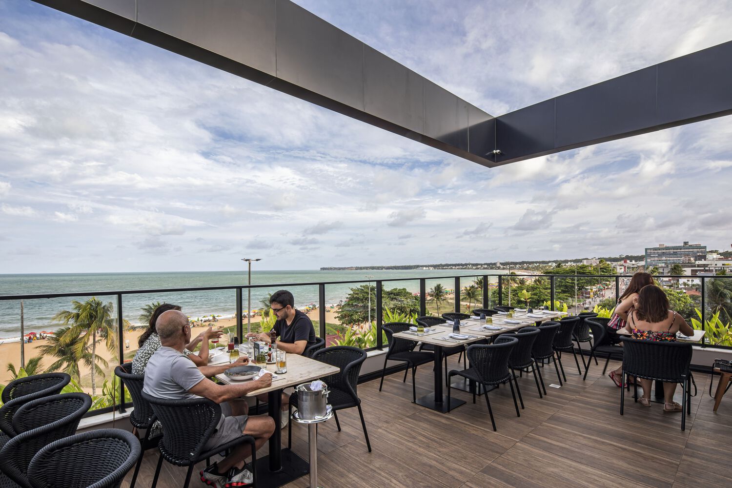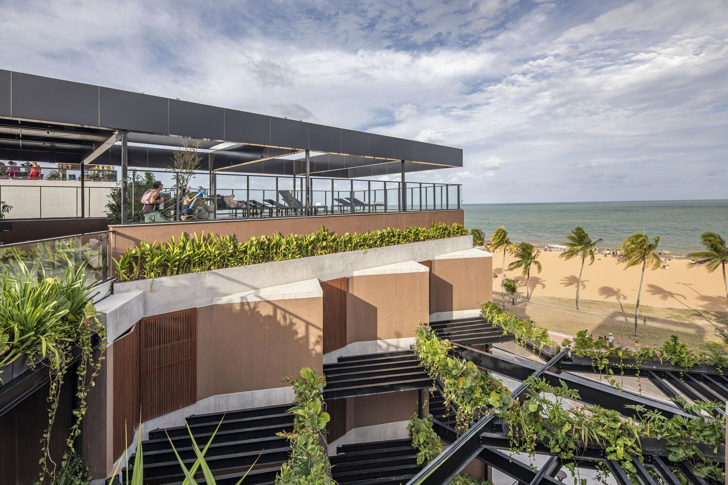 Ngoài ra, KTS còn sử dụng các công xôn góc chéo so le để đảm bảo tất cả các phòng đều có view nhìn ra biển. Tầng trên cùng được thiết kế thêm một cây cầu trung tâm bắc qua gian che kim loại, dẫn đến hai sân thượng với nhà hàng và hồ bơi và những không gian để khách quan sát khu vực trung tâm cũng như hoạt động sôi nổi của thành phố và biển. Cuối cùng, mỗi phòng đều có cửa sổ thông gió chéo và cửa chớp kim loại để điều tiết ánh nắng và duy trì sự riêng tư.