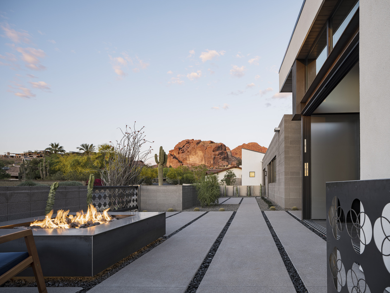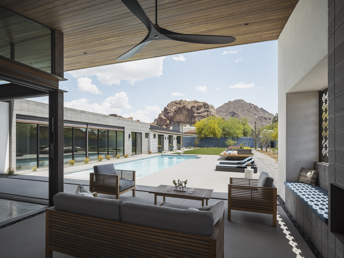 Nhìn từ bên ngoài vào là một mái nghiêng hướng về phía núi Camelback, bắt trọn cảnh, ôm trọn gió núi thổi vào lòng người.