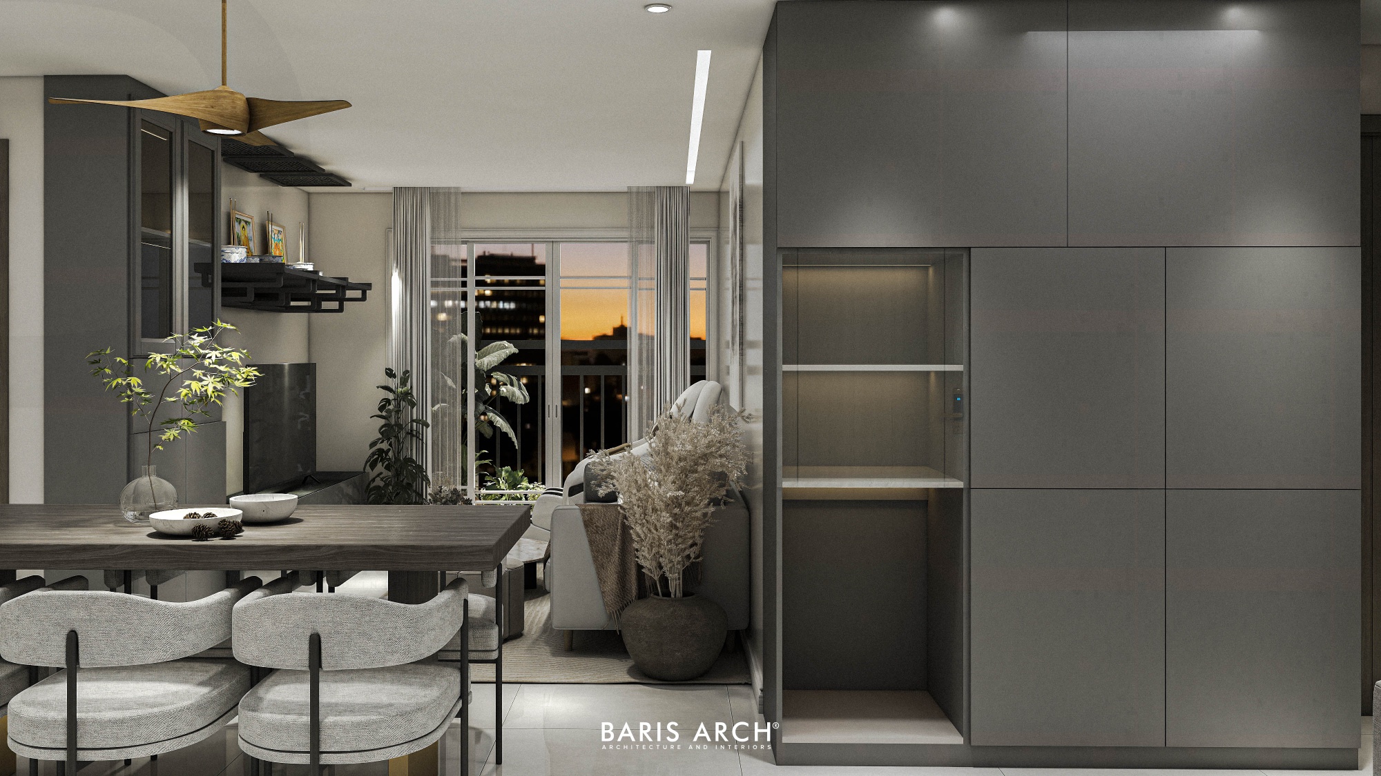 Không cần cầu kỳ, xa hoa, rực rỡ, Dennis chọn cho mình một màu xám đủ sang trọng mà giản đơn để phủ khắp tổ ấm của gia đình.