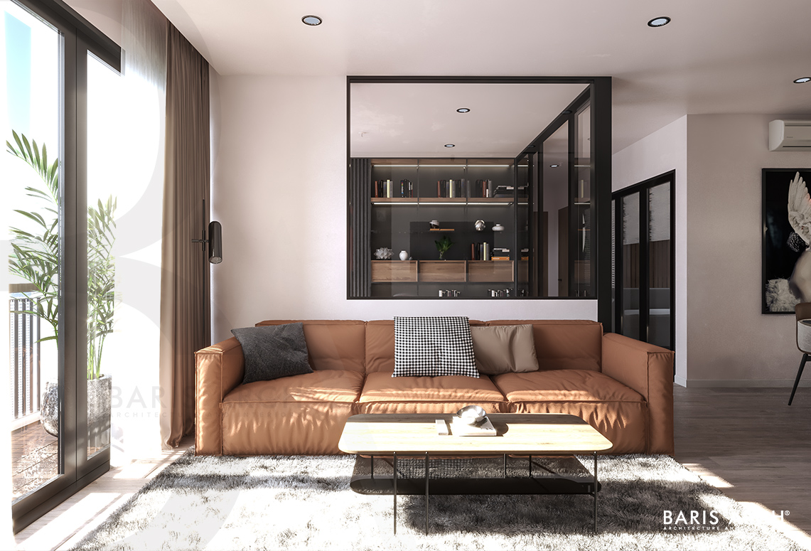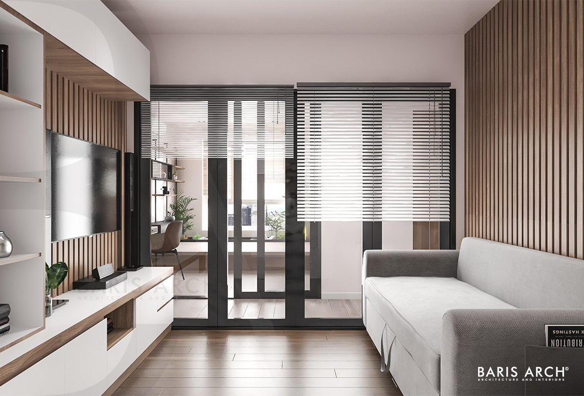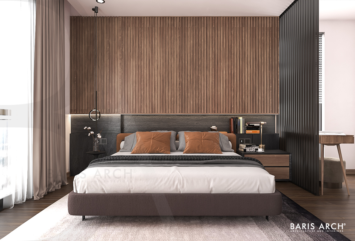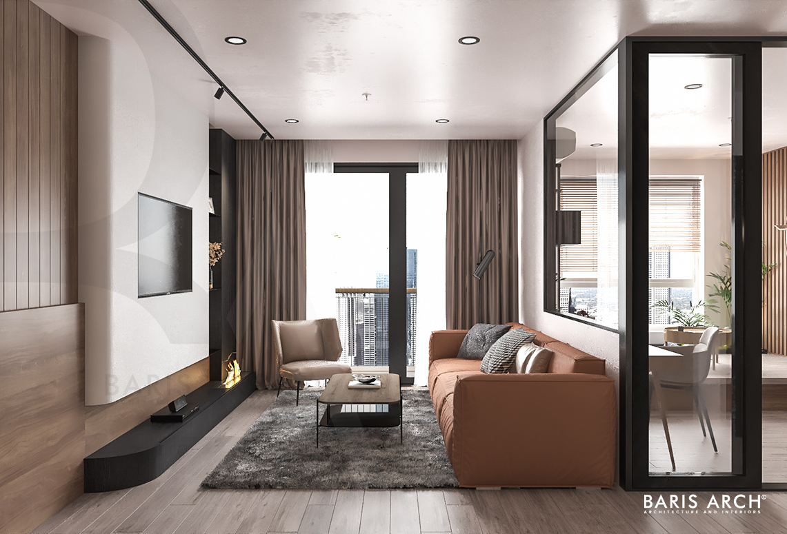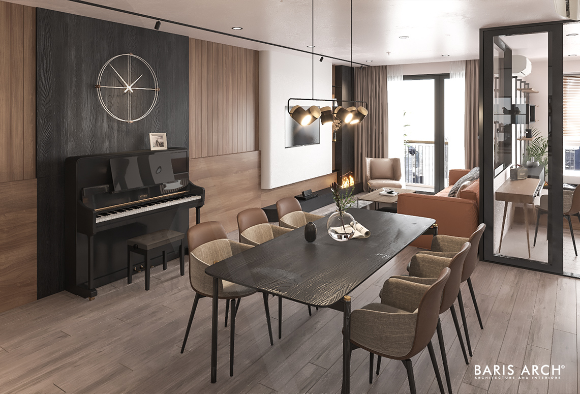 Xuyên suốt mạch không gian, những gam màu trung tính của gỗ và đá được Baris Arch chắt lọc tinh tế điểm tô sự ấm cúng cho căn hộ. Sự cân bằng giữa các yếu tố kết cấu, vật liệu và ánh sáng đã mang đến sự hài hòa cho không gian, từ đó giúp cảm xúc và cảm giác gia chủ được nâng cao trong nhịp sống hằng ngày.