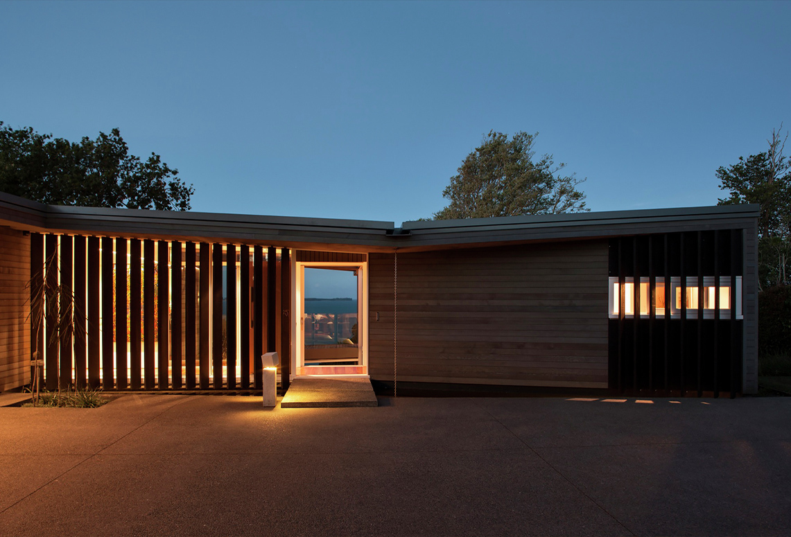 Ẩn mình giữa khung cảnh thiên nhiên tuyệt đẹp của vùng vịnh Auckland, New Zealand, Hollway House là chốn dừng chân lý tưởng cho những ai muốn tận hưởng cuộc sống yên bình, giản dị nhưng vẫn đầy đủ tiện nghi. Ngôi nhà nằm trải dài theo triền dốc trên một vách đá sa thạch, phóng tầm nhìn bao trọn vùng biển đảo phía xa. Tồn tại từ những năm 60 của thập kỉ XX, nơi đây vốn là một căn nhà 2 tầng hình chữ nhật cũ kĩ, bị không khí biển ẩm ướt ăn mòn nhiều phần. Tận dụng lợi thế địa hình, căn biệt thự được tái thiết kế với không gian rộng mở, kết nối hài hòa với cảnh quan tự nhiên xung quanh.