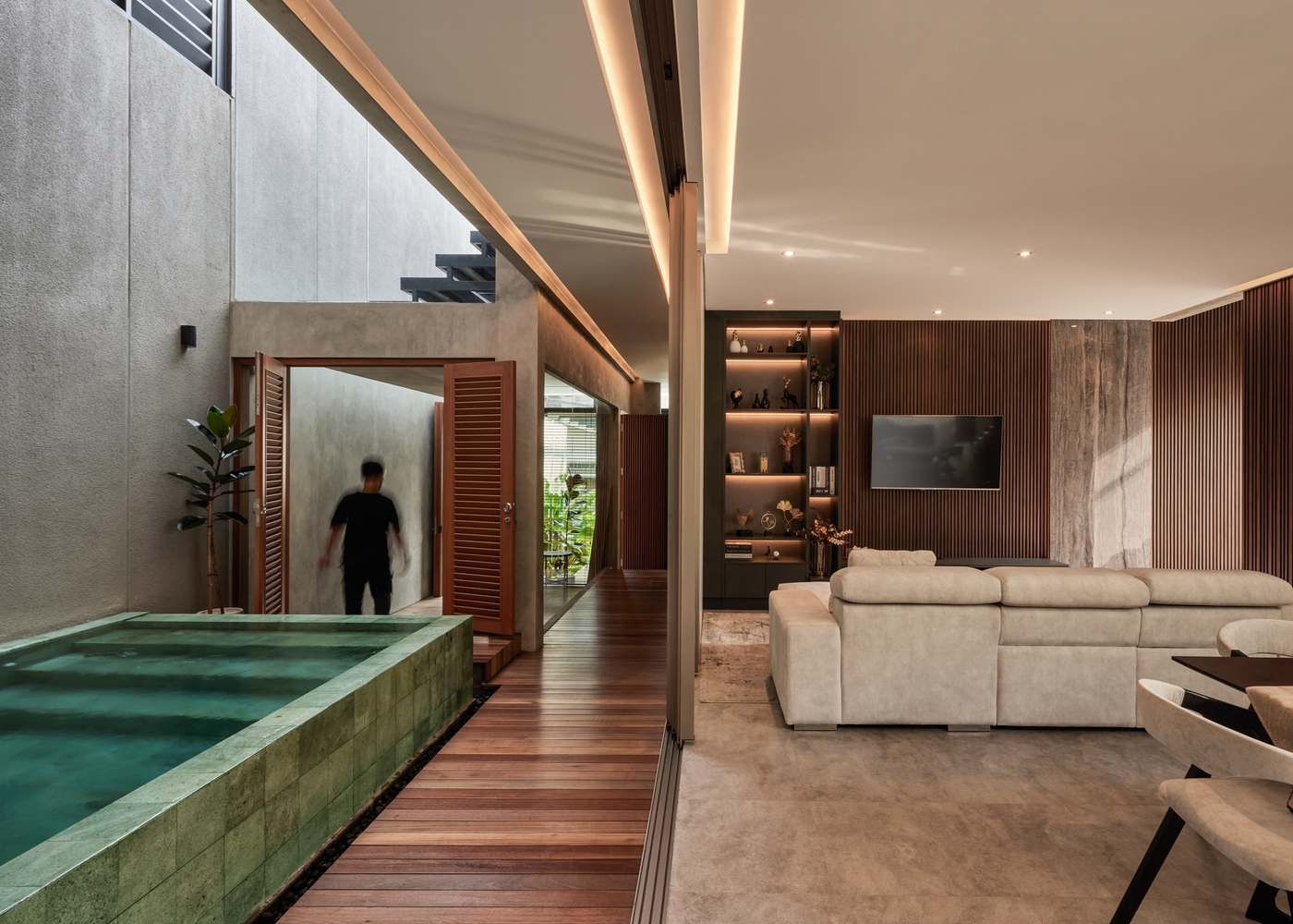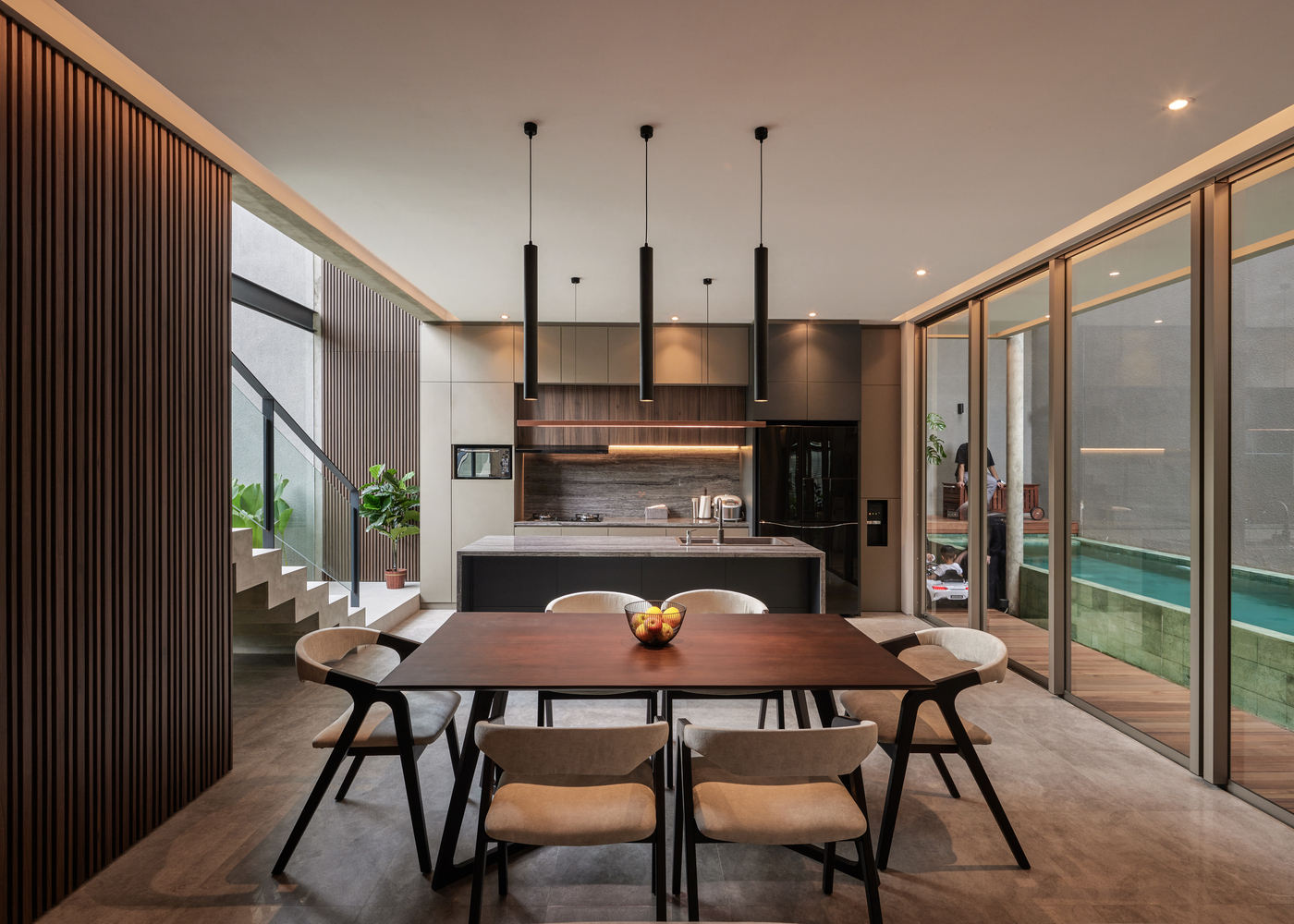 Một gia đình trẻ với cuộc sống bận rộn trong một thành phố tấp nập, cần một nơi ở vừa thể hiện cá tính của họ, vừa là một nơi để nghỉ ngơi thoải mái và yên tĩnh, tận hưởng thời gian bên những người thân yêu. Vì vậy, tất cả các không gian trong nhà đều được kết nối với nhau để có thể cảm nhận được hơi ấm tình gia đình với cảm giác như đang đi nghỉ dưỡng mỗi ngày.