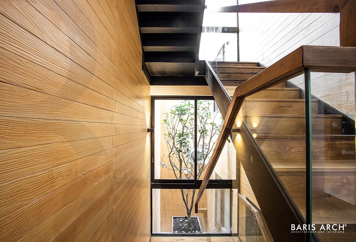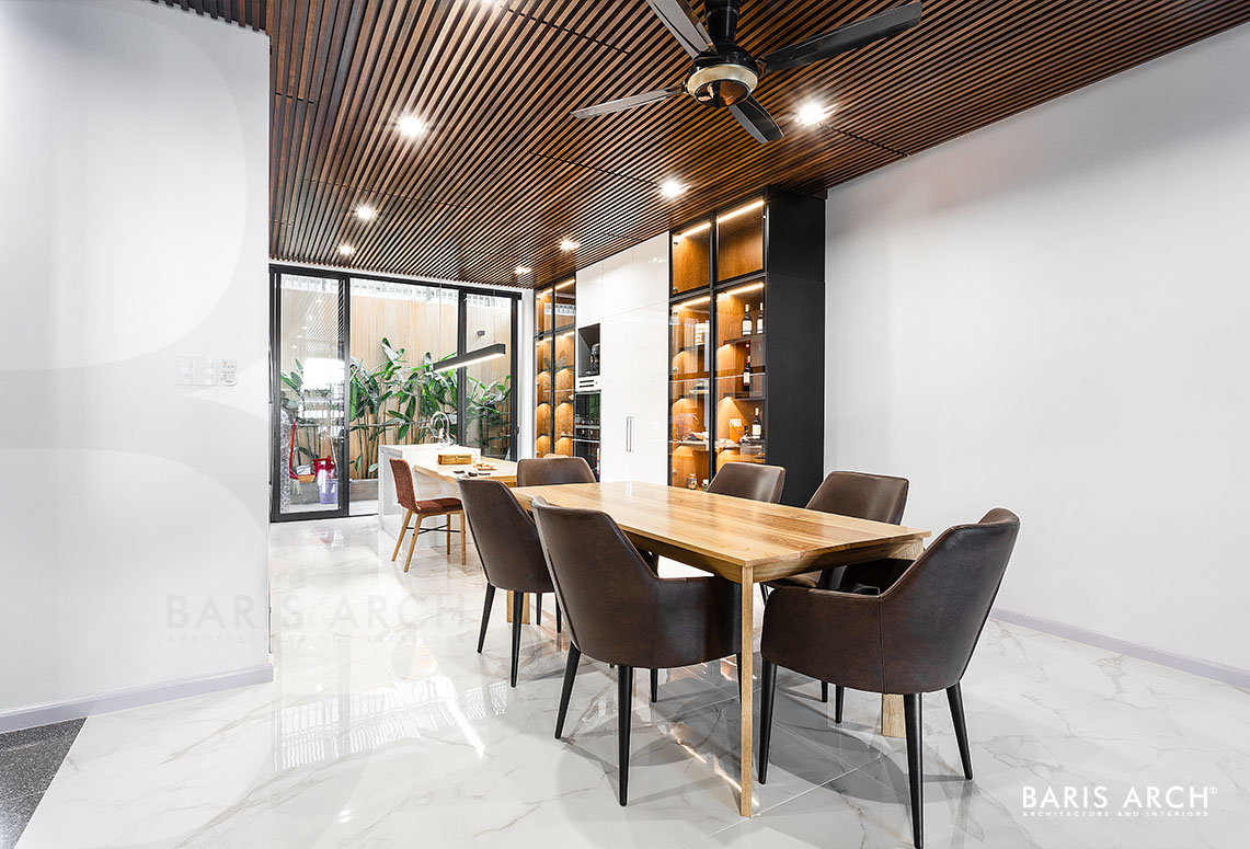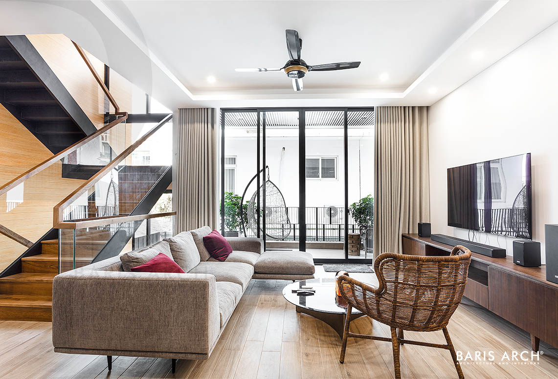 Đây là dự án được Baris Arch thiết kế, thi công cho đại gia đình 3 thế hệ chung sống. Nếu như ông bà nội yêu vẻ đẹp truyền thống Việt Nam với lối sinh hoạt chung, đôi vợ chồng lại chuộng thiết kế hiện đại với không gian sống thoáng đãng. Tập trung vào nhu cầu gia chủ, Baris Arch đã thiết kế ngôi nhà theo hướng không gian mở, kết hợp sử dụng mạch gỗ chảy tràn xuyên suốt cả bốn tầng để tạo tính liên kết và đồng bộ cao.