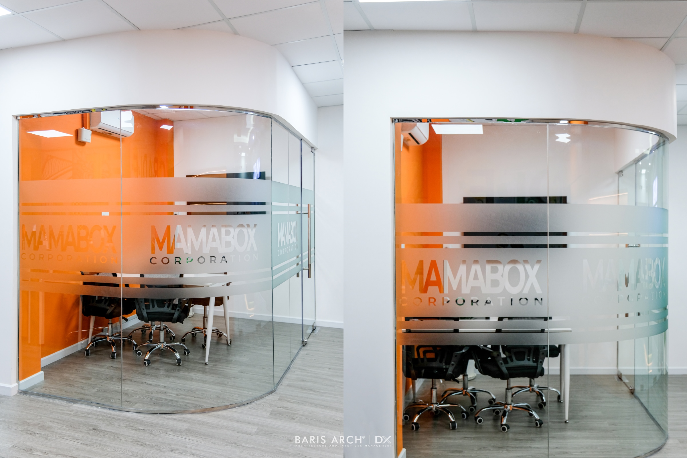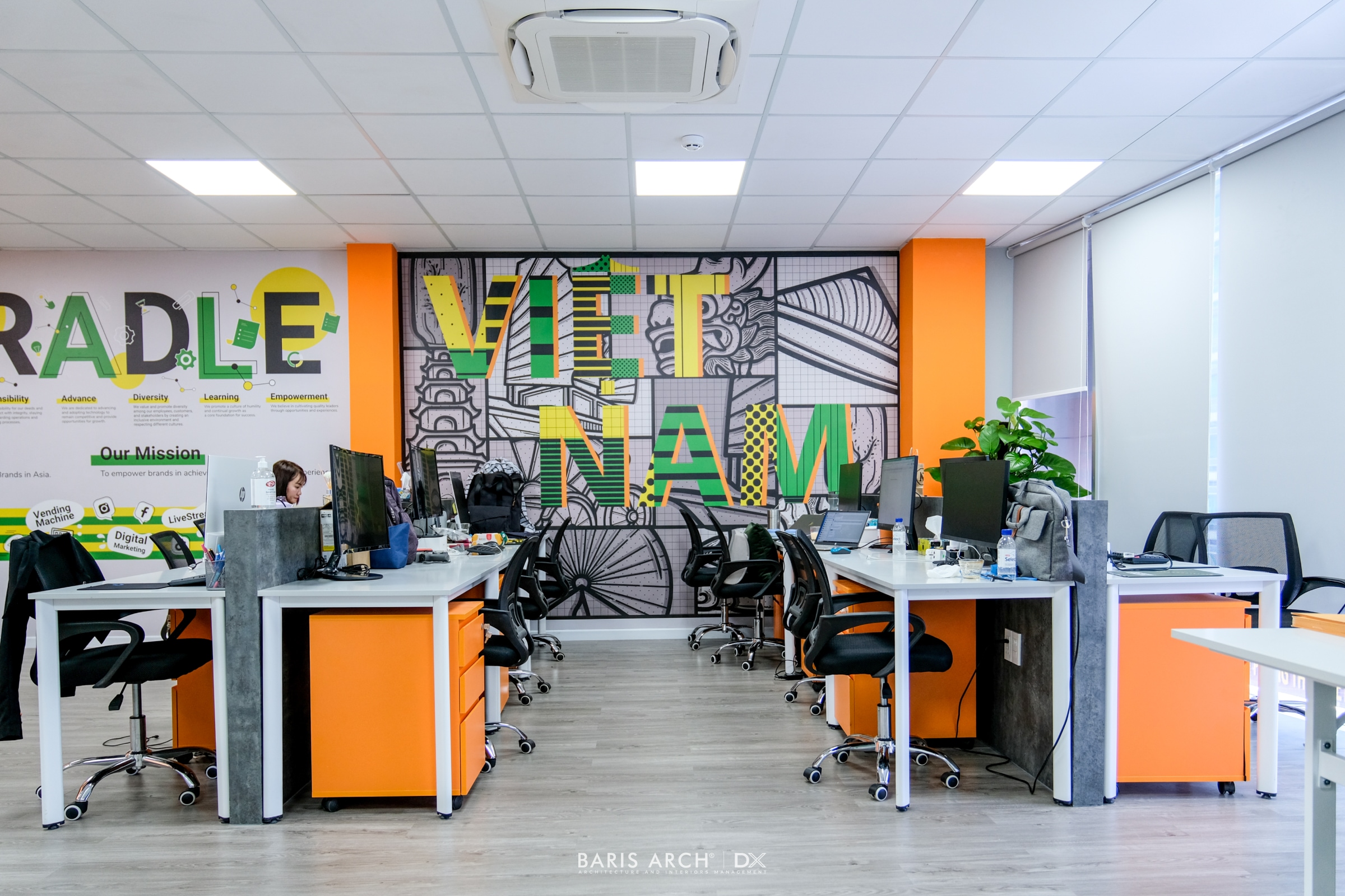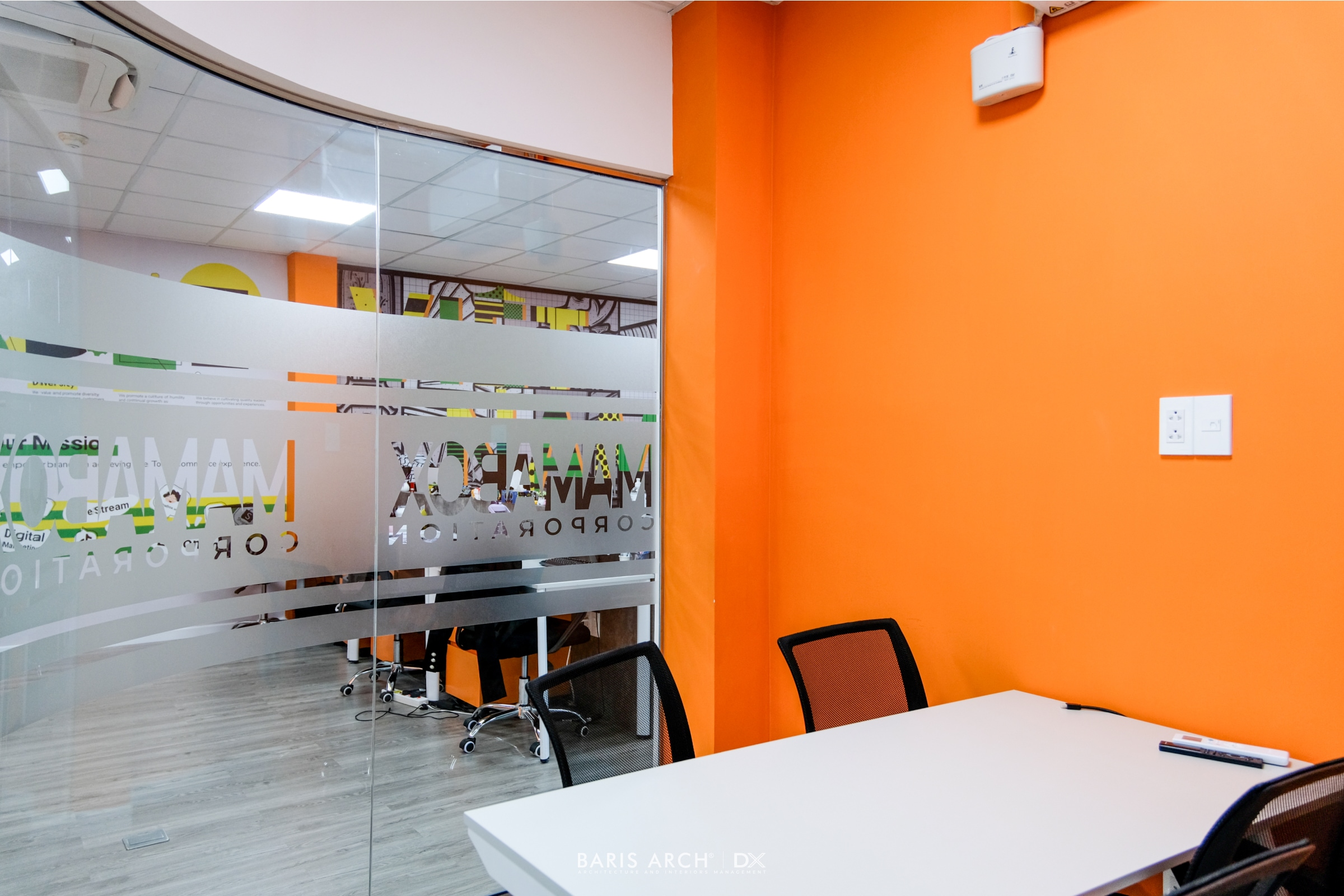 Mamabox Corporation office is designed to be simple and modern according to the investor's wishes. By arranging the workspace to suit the needs of the departments, combining in the space are warm painted walls and outstanding graphic images that carry the brand's message and create creative inspiration in the work.