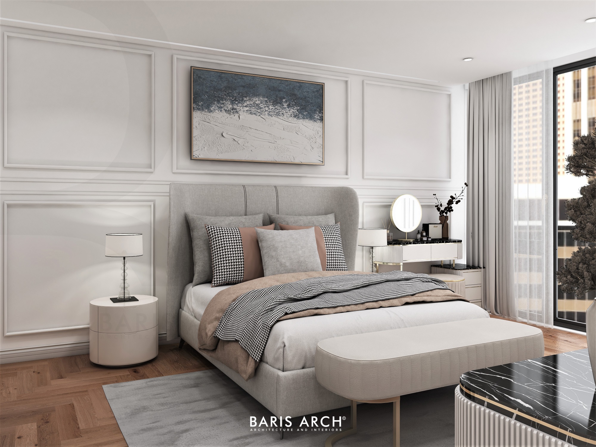 Được giao nhiệm vụ thiết kế một căn hộ 4 phòng ngủ ở Empire City, chúng tôi rất phấn khởi với trách nhiệm cao cả: thiết kế không gian sống cho 6 người khác nhau về sở thích và phong cách thiết kế, cùng chung sống dưới một mái nhà. Khu vực chung của phòng khách, nhà bếp và phòng ăn mang phong cách thiết kế hiện đại. Sự đơn giản và tính vượt thời gian của phong cách này giúp nó trở thành sự lựa chọn tối ưu cho tất cả mọi người. Trong mỗi phòng ngủ là mỗi một sự khác nhau về màu sắc và chất liệu, tuỳ theo nhu cầu của chủ nhân của chúng. Nhưng một thiết kế tốt là thiết kế có khả năng kết nối mọi thứ cho hài hoà với thiết kế chung: hiện đại và sang trọng giữa lòng thành phố.