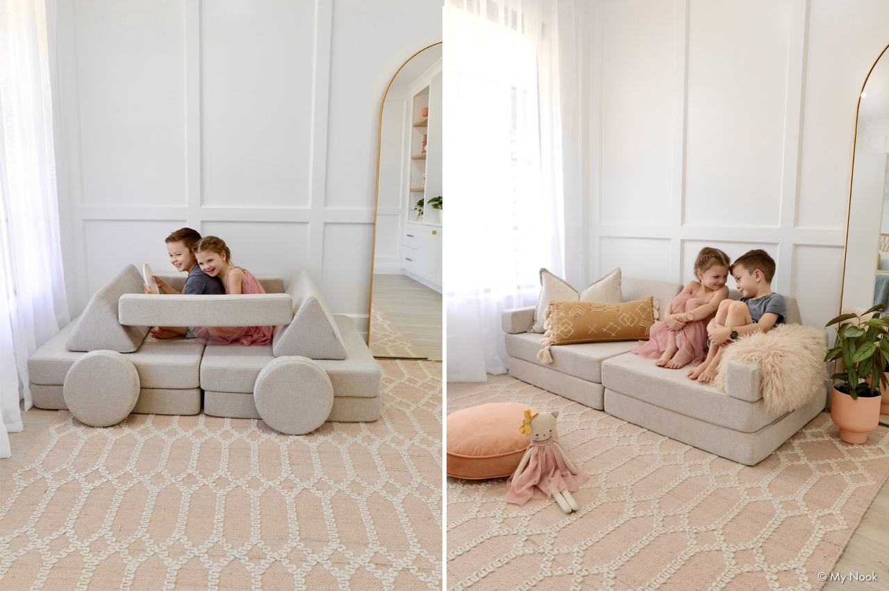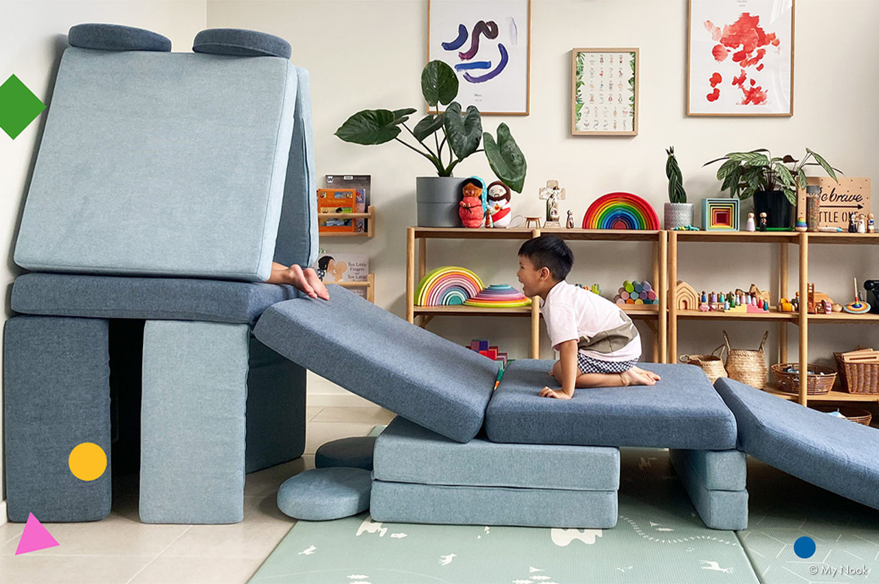 Nội thất mô-đun có thể dùng được trong nhà với kết cấu tương tự ghế sofa. Với kết cấu dạng ghế đôn và được ghép lại tùy theo trí tưởng tượng và hoạt động của trẻ, các sản phẩm của My NooK mang lại trải nghiệm vui chơi lành mạnh.