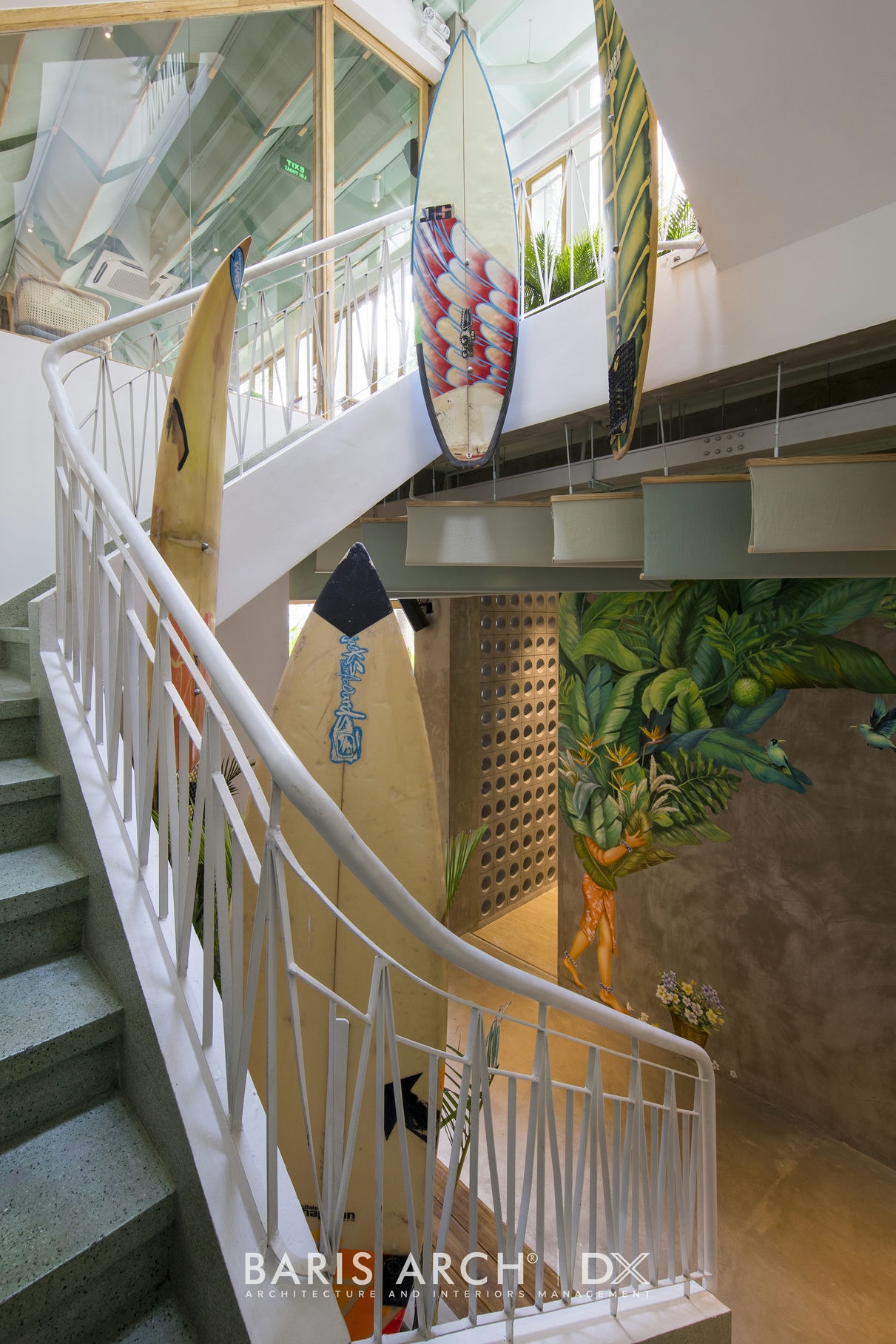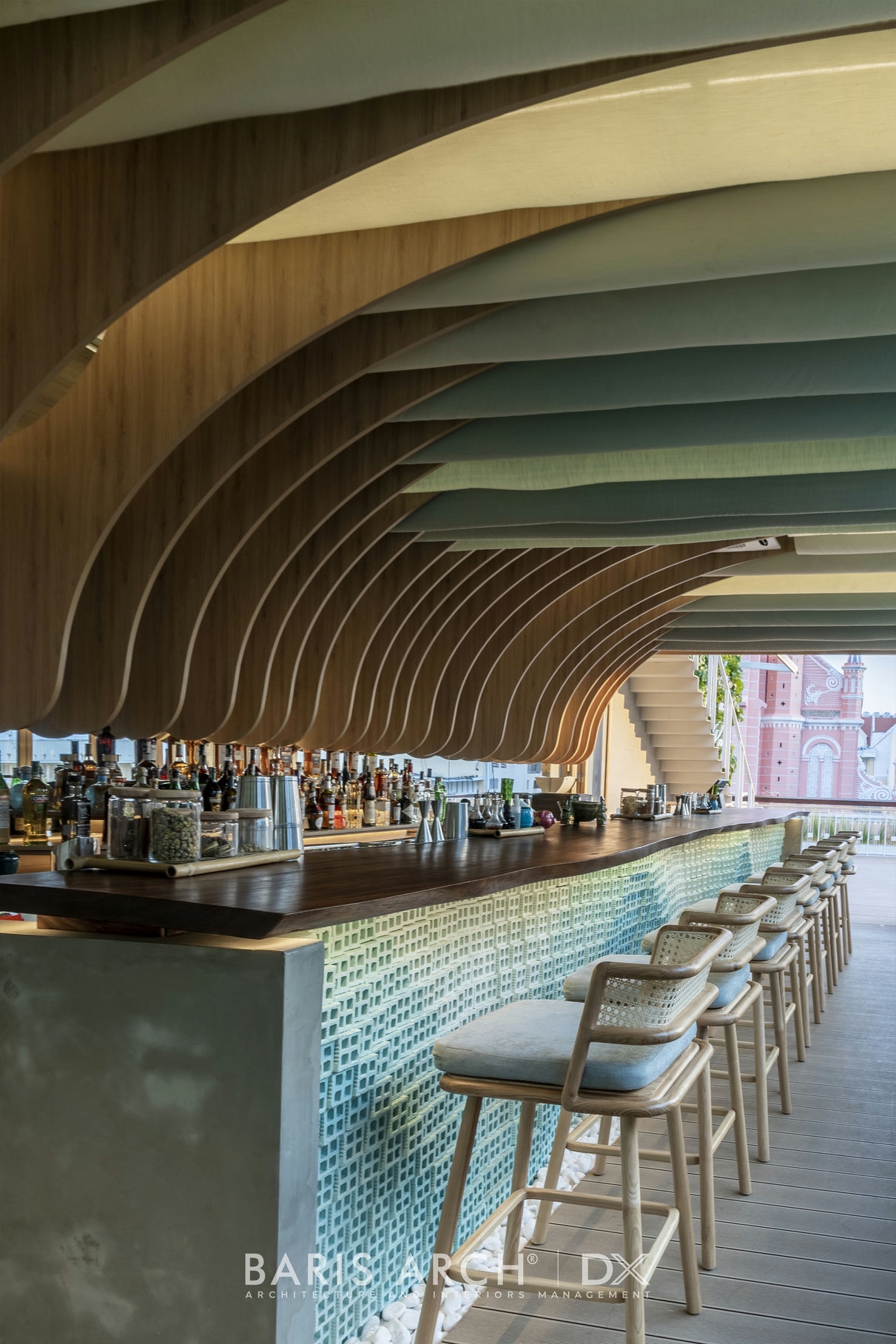 Visiting Ola Hale is an experience of interference between two cultures Hawaii - Vietnam. Especially this experience is designed according to the Vietnamese home-visiting culture where everyone is welcomed at the bar on the ground floor, gathering together for dining on the 1st floor, then bonding more intimately together at the bar, in a cozy space that tells stories beneath the "waves crashing" on the ceiling and the warm dim lights. Even more ideal is to enjoy the outdoors on the 2nd-floor balcony, which overlooks the historic pink Tan Dinh church.