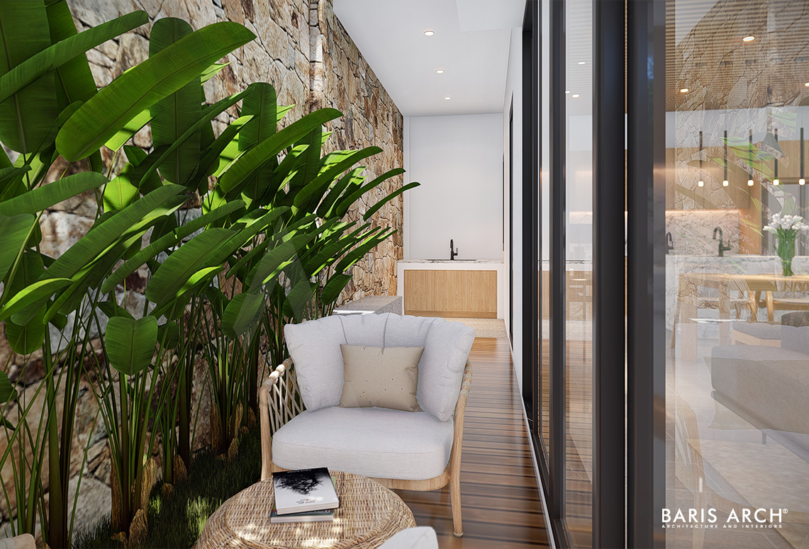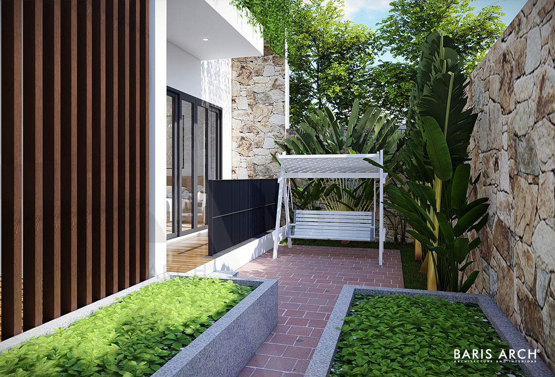 “Gió như phang, nắng như rang.” Đây là câu nói quen thuộc khi chúng ta nghĩ đến vùng đất Phan Rang, nắng gắt - khô hanh. Chính vì vậy, trong dự án nhà ở Phan Rang, Baris Arch đã tận dụng các mảng xanh trong thiết kế.