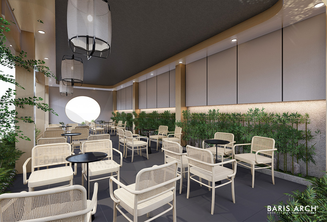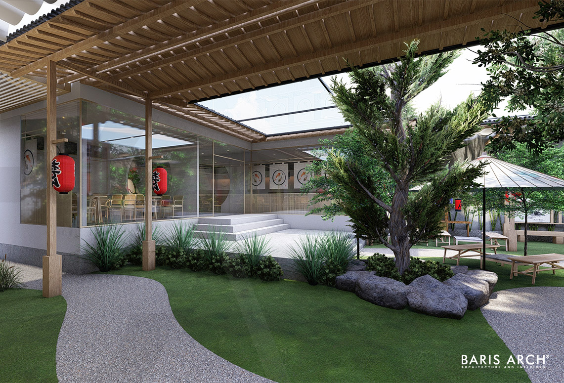 Một thiết kế quán Cà phê theo phong cách Nhật Bản nhẹ nhàng của Baris Arch. Từng đường nét đơn giản tinh tế kết hợp cùng các yếu tố đá, gió và cây xanh,....mang sự mộc mạc, gần gũi và dễ chịu cho mỗi vị khách khi bước vào.