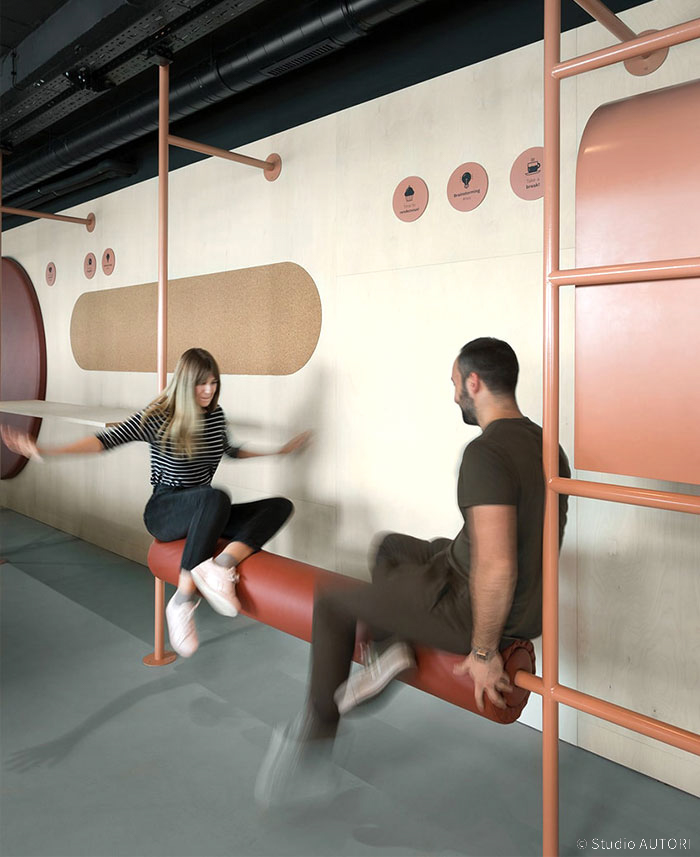 Xà đơn và dụng cụ tập nhẹ chỉ chiếm một phần nhỏ diện tích không gian nhưng mang lại lợi ích lớn. Hãy lựa chọn loại xà đơn và dụng cụ đơn giản, dễ di chuyển và đặt chúng ở nhiều khu vực rải rác trong văn phòng, nơi có nhiều người qua lại và thiết kế mảng tường ấn tượng để tạo điểm nhấn. Từ đó, các thành viên trong văn phòng sẽ dễ dàng tiếp cận đến dụng cụ tập hơn.