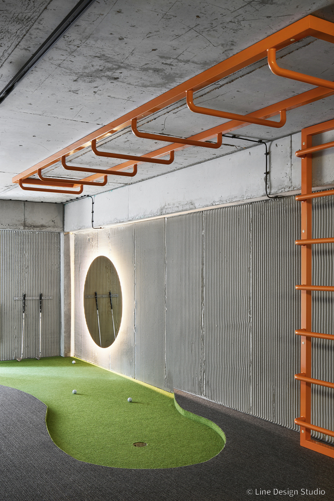 Golf là bộ môn kén người chơi vì điều kiện kinh tế, thế nhưng với góc “mini golf” trong văn phòng lại giúp mọi người dễ tiếp cận với bộ môn thể thao tinh hoa này hơn. Với phương án có “đầu tư” một chút, bạn cần một khu vực khoảng 6 m2 làm hố golf, chọn một mốc làm tee-box (điểm xuất phát), tạo lỗ golf, và trang trí bức tường để treo gậy. Khu vực mini golf được thiết kế chỉn chu sẽ là nơi giúp nhân viên thư giãn ngoài giờ làm việc, rèn luyện sức khỏe và sự tập trung.