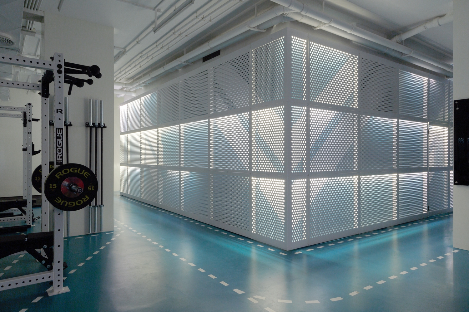 Không gian được chia thành 3 chức năng chính: Health Bar (Không gian quầy bar và chỗ ngồi), văn phòng, phòng tập thể dục (studio, phòng tập thể dục, tủ locker, nhà vệ sinh). Thiết kế xoay quanh việc tạo ra không gian thân thiện và cảm giác thoải mái. Với cách tiếp cận tối thiểu tập trung vào sự đơn giản và vật liệu thuần túy, hai gam màu chủ đạo chiếm ưu thế trong không gian là trắng và xanh bạc hà.